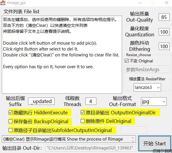RimageGUI批量压缩图片软件提供GNU与MSVC双版本,并自带所需GNU套件dll,彻底解决运行库缺失问题,以及能够隐藏运行该软件防止窗口频繁弹出,更加符合用户的使用习惯,是一款不错的图像压缩工具