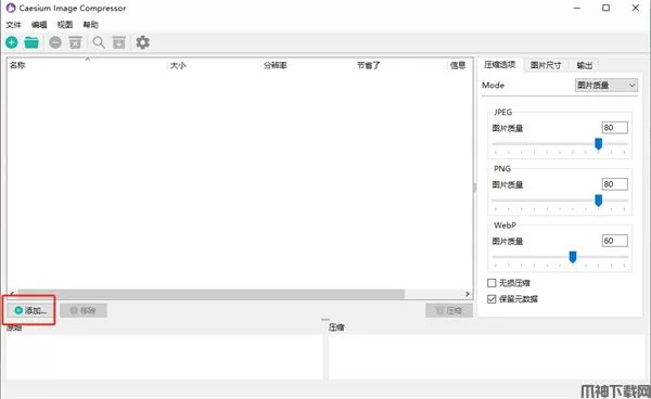 1、点击【添加】导入需要压缩的图片;