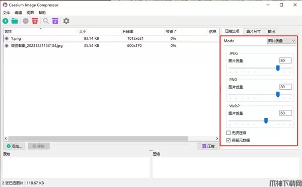 2、设置压缩品质和格式;