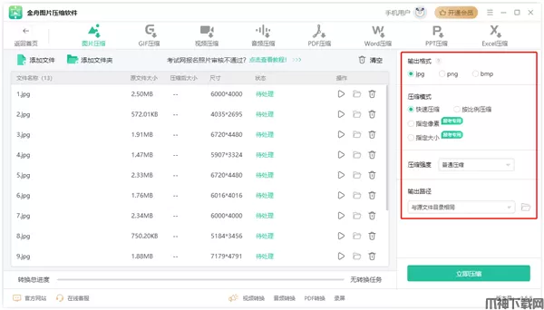 金舟图片压缩电脑版软件还支持批量导入和批量压缩,并提供快速压缩模式,可一键完成随时随地压缩图片,让图片压缩更轻松更快捷、更专业!