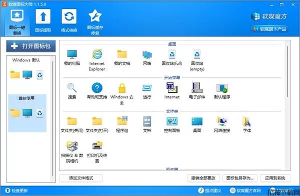3、对电脑中默认的图标进行一键替换,软件支持批量提取和单个提取