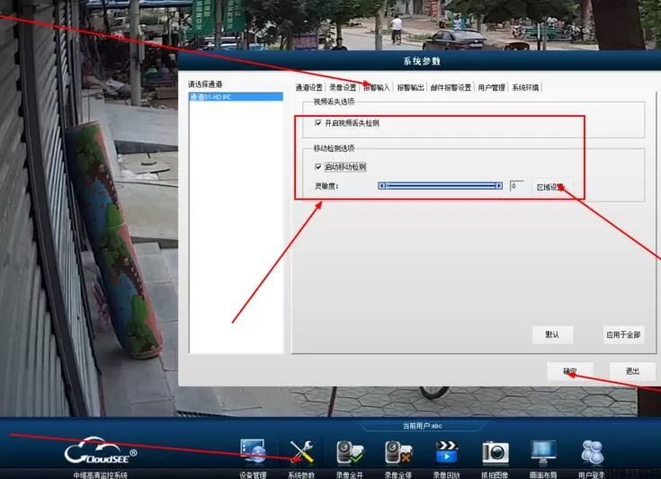 3、点击”系统参数“——”报警输出“依次点击:“开启录像”——“检测到报警后抓拍图像”——“检测到报警后播放报警音”,点击“确定”即可。