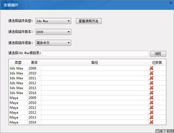 ①在“请选择插件类型”下拉列表框中选择软件类型,例如“3ds Max”。