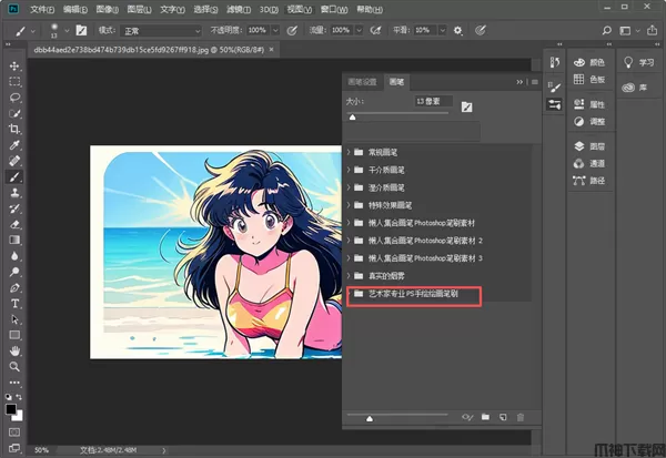 3、之后再画笔工具,就可以看到添加成功的懒人集合画笔素材包了。