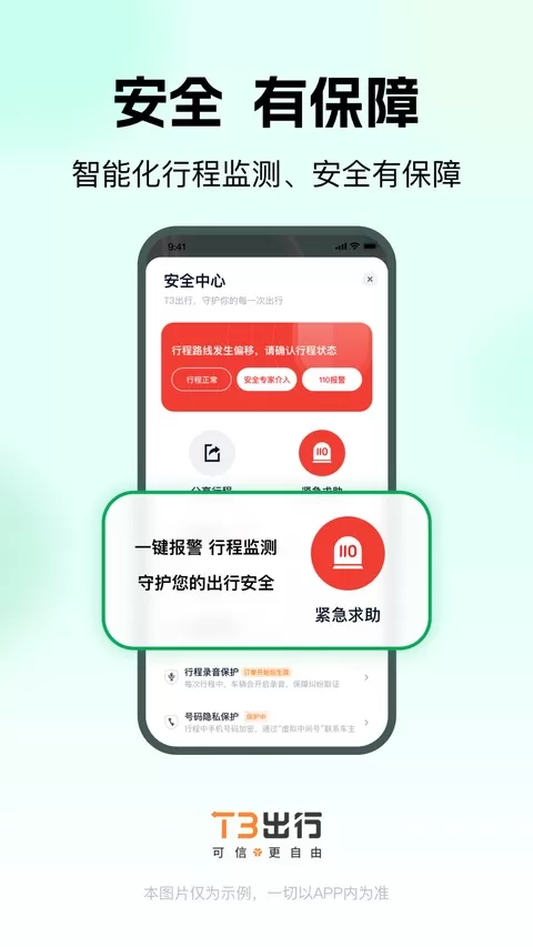乘客至上的服务出发点,高标准的司机认证,完备健全的号码保护,T3出行app下载安装为您提供综合保障。