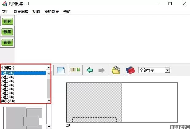 在下拉菜单里确认照片摆放张数。