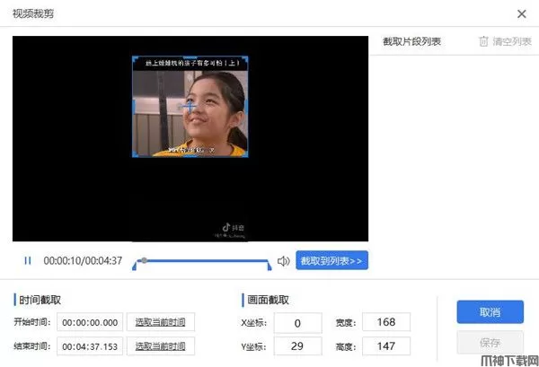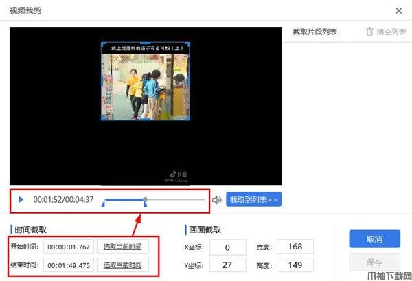 4、设置时间截取以及视频裁剪长宽度,点击保存即可