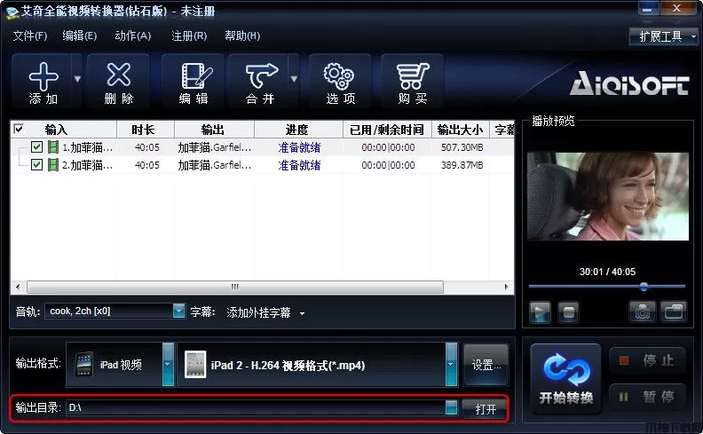 1、安装和运行艾奇全能视频转换器钻石版;