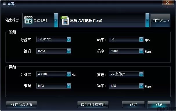 支持自定义输出视频,有特殊需求用户自行设置输出格式和各种特殊要求的视频参数。