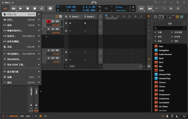Bitwig Studio中文版是一款专业的音乐制作软件,集多轨录音、MIDI编辑、音频处理与实时控制于一体。