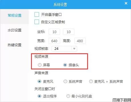 打开设置界面,点击常规设置,选择视频来源为摄像头