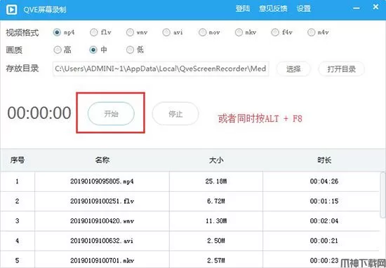 点击开始按纽,或者同时按ALT + F8,即可快速录制视频