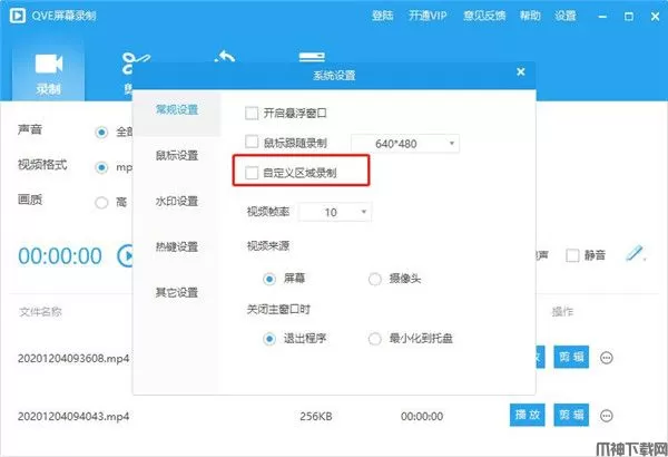 打开设置界面,点击常规设置,勾选自定义区域录制, 并且设置要录制的区域
