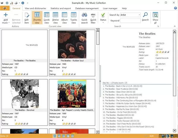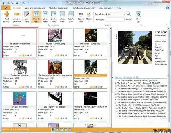 My Music Collection是一款功能方面相当不错的音乐管理软件,软件主要的目的就是让用户完成对各种专辑,音乐的管理,并且支持对音乐进行评分,这样就能从高到底的来完成对音乐的管理,并且还对强大的搜索工具进行内置,只要输入相关的词,