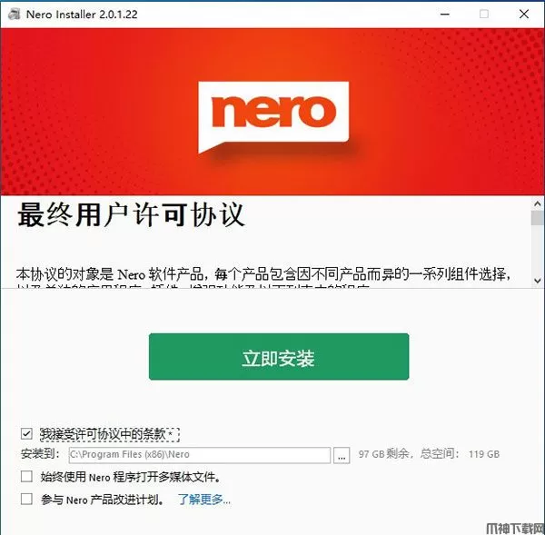 1、从本站下载Nero在线安装程序,同意软件安装协议即可