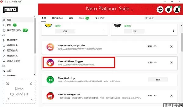 3、登陆Nero账号,在其中找到Nero AI Photo Tagger在线安装即可