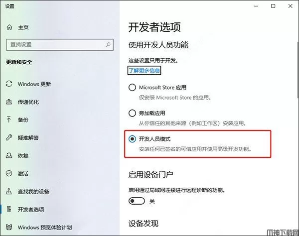 2、到电脑设置中开启开发者模式