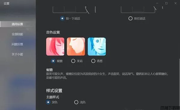 6、此外还支持“蜜糖”“茉莉”和“青葱”三种音色设置,支持深色和浅色主题设置。