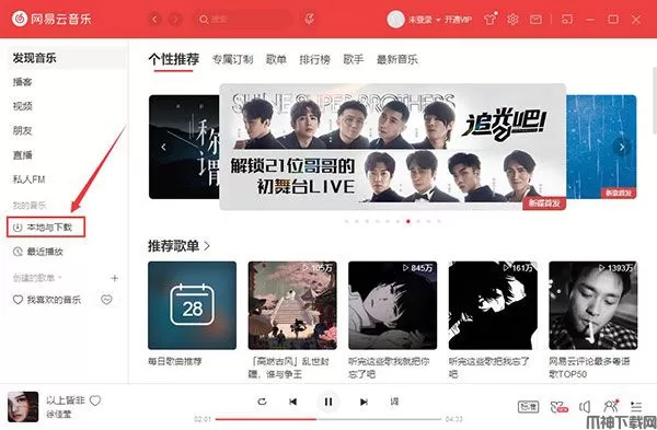 1、启动网易云音乐软件,点在侧边栏中找到本地与下载页面,然后点击进入。