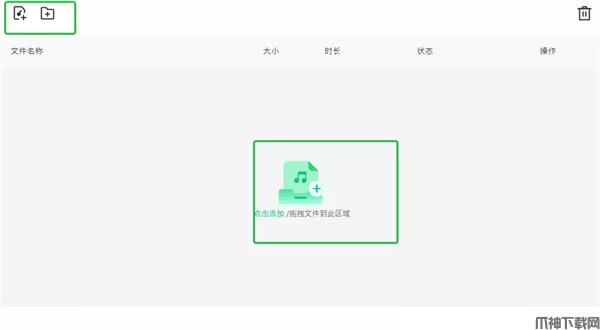 1、进入音频格式转换器软件中,点击添加或拖拽音频文件到该区域中。