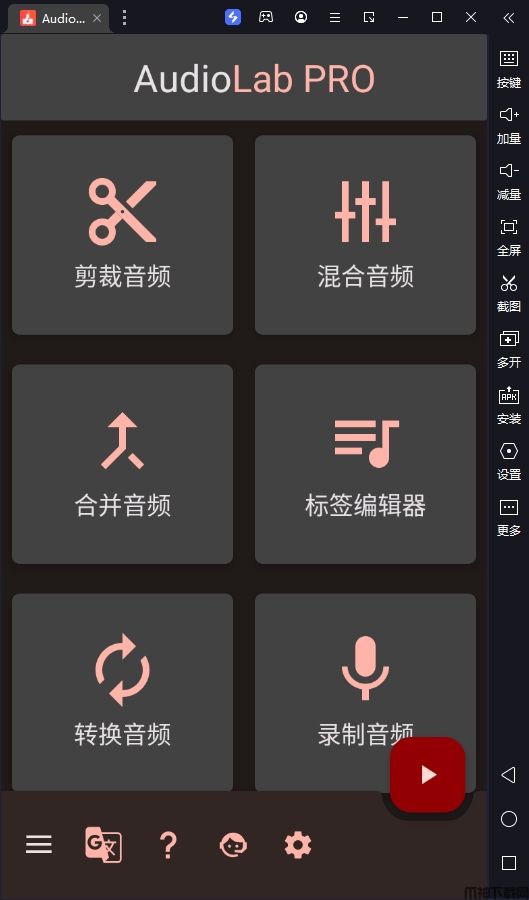 audiolab电脑版是通过安卓模拟器运行的一款专业音频编辑神器,软件的功能非常的强大而且全面,它既可以制作用户自己的专属铃声,非常的有趣,可以按照用户自己的需求来设置。