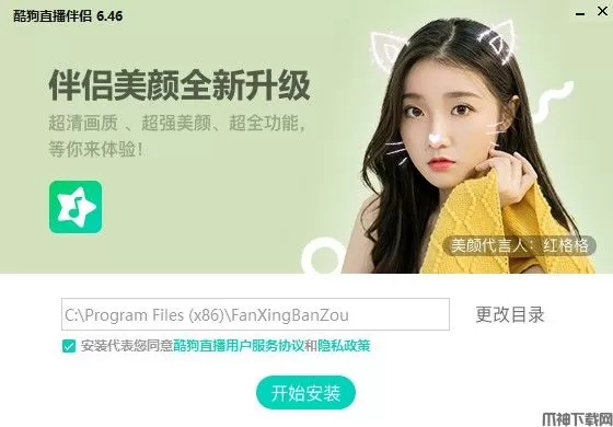 1、下载运行酷狗直播伴侣exe文件开始安装;