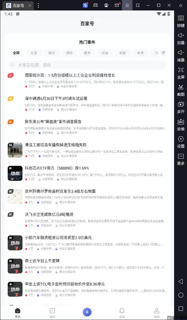 百家号电脑版是借助安卓模拟器在pc端运行的一款的集创作、发布、变现于一体的内容创作经营平台软件,该软件分领域热门事件、内容、作者,提供更多灵感启发创作。