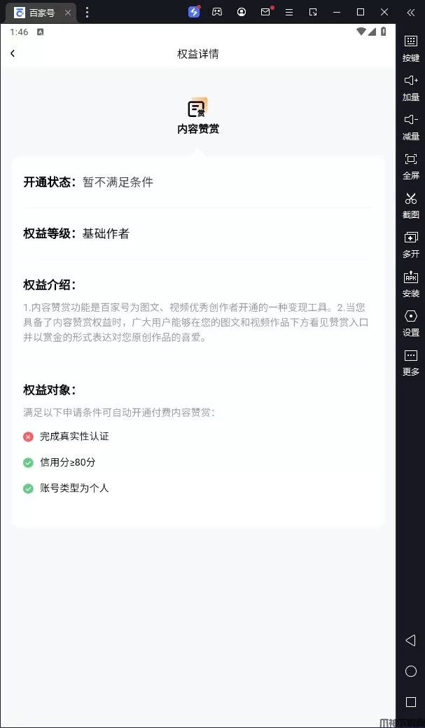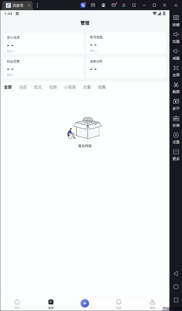 百家号电脑版是借助安卓模拟器在pc端运行的一款的集创作、发布、变现于一体的内容创作经营平台软件,该软件分领域热门事件、内容、作者,提供更多灵感启发创作。同时还支持发布图文、视频、动态、直播、图集等多类型内容,创作者发布的内容将在百度APP、好看视频等多平台分发并被百度搜索收录,是众多企业实现营销转化的运营新阵地。