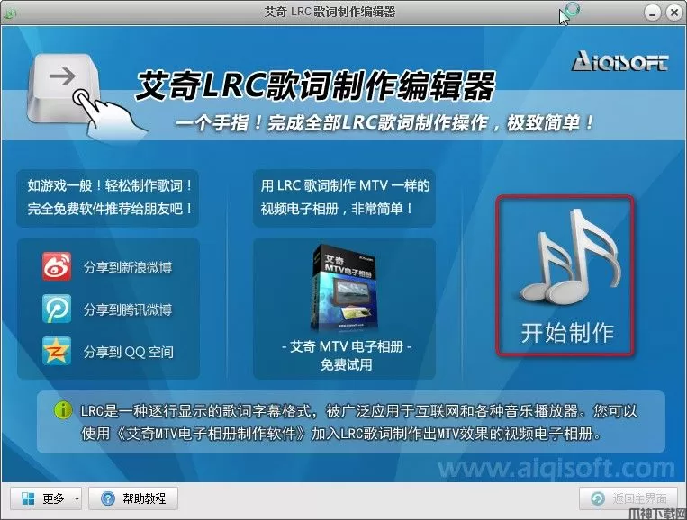 艾奇LRC歌词制作编辑器是一款完全免费的LRC歌词制作工具,能够帮助您轻松为喜爱的歌曲制作和编辑同步歌词,彻底告别手抄歌词的麻烦。