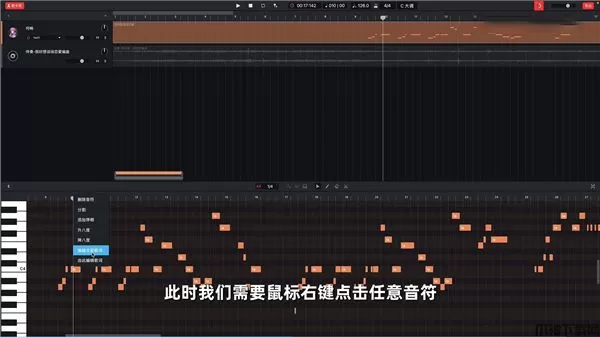6、接下来使用鼠标右键点击任意音符,点击编辑全部歌词;
