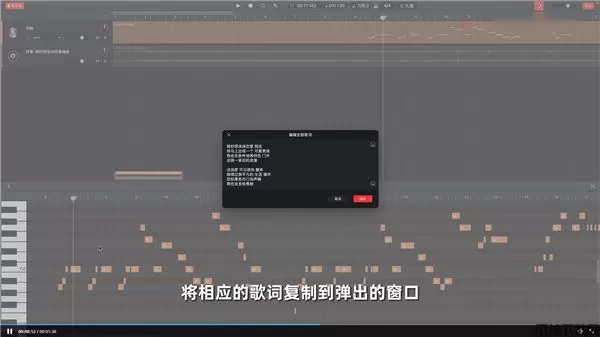 7、将对应的歌词复制到弹出的窗口;