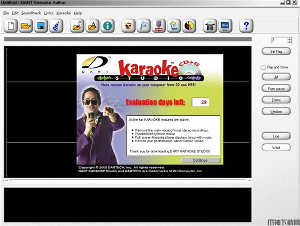 dart karaoke studio是一款专门应用于消除歌曲中人声原唱的软件。它不仅可以帮助用户对CD音轨的歌曲进行消人声处理,还可以对WAV、MP3格式的文件进行操作,例如插入静音、剪切和切换标记等操作。与其他同类型消除软件相比,dart karaoke studio中文版最大的一个特点就是自带了一个DCR的音轨刻录软件,有了这个用户就完全可以从CD中采集原唱歌曲,用户可以直接在这里进行人声的消除,然后就可以直接在这首歌曲中录制完全属于自己的个人CD哦。