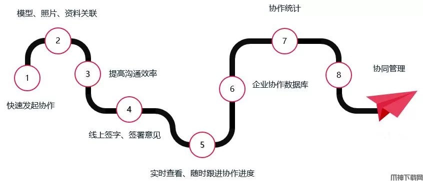 鲁班协同实现了施工过程中协作工作的完整闭环,从协作发起到最终实现管理功能,有一整条闭环路径。