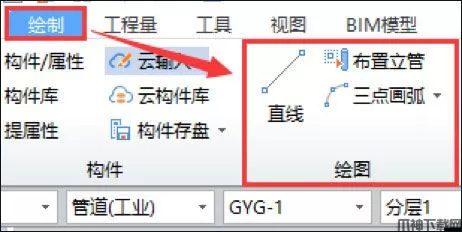 可以通过直线、布置立管和三点画弧功能绘制管道;