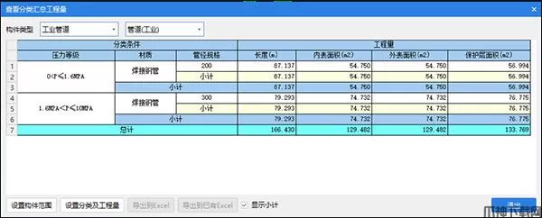 ②属性中新增了工业管道的出量分类,通过设置不同的压力等级以及传输介质进行划分出量