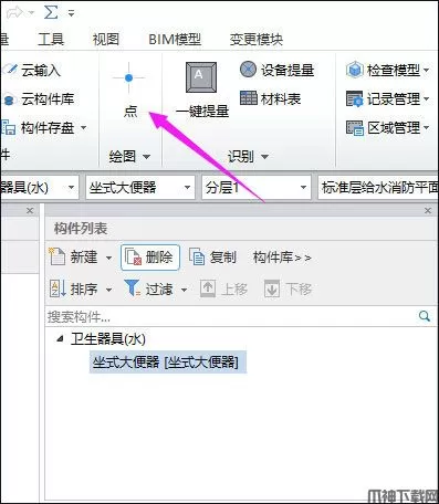 利用【点绘制】功能,直接将要识别的构件点在图上相应位置即可;