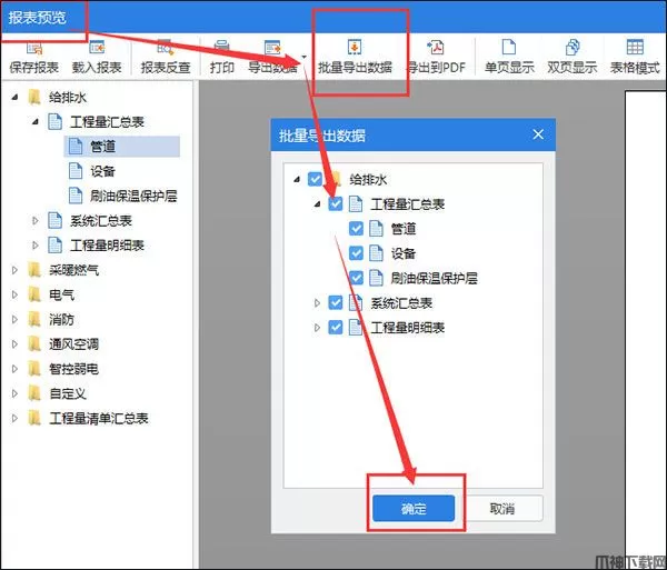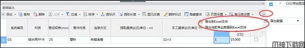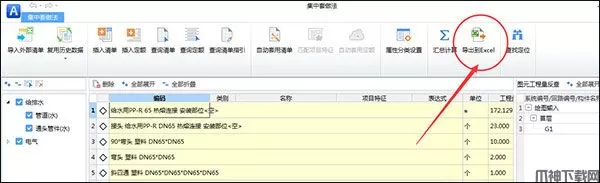 套做法界面:在集中套做法界面在每个专业报表下都有导出到excel;