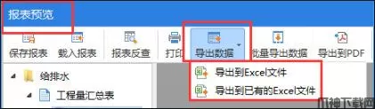 报表预览界面:点击报表预览界面---导出数据--导出到excel文件/导出到已有的excel文件。