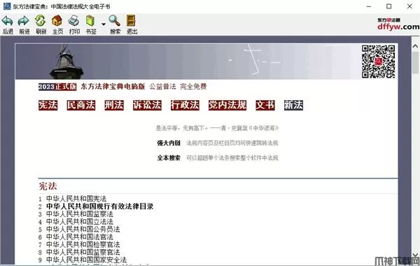 东方法律宝典电脑版是东方法律宝典第十七个版本,是一款法律法规电子版软件,其中收录法规7600余部,包含了全国人大常委会关于刑法、刑事诉讼法的七个最新法律解释,对废止的法规进行了特别标注,并链接新法规。东方法律宝典是学习法律用户最好的辅助,使用东方法律宝典,用户还可以在线免费进行法律咨询非常方便。东方法律宝典继续上一版本完全免费,无需注册,无限期使用,法规界面大小可调,页面文字可复制!欢迎有需要的用户下载使用。