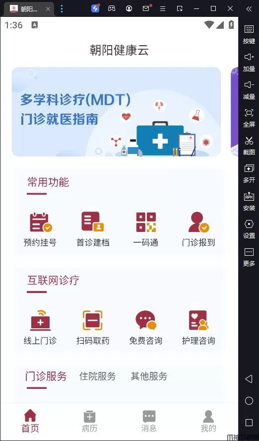 朝阳健康云电脑版借助模拟器在电脑上运行的一款医疗健康软件,旨在落实"互联网+医疗健康"战略,提升医疗服务水平,为用户提供更便捷、高效的医疗服务体验。