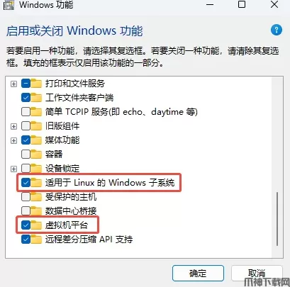 ② 虚拟平台。Win 图标右键选择搜索,搜索“启用或关闭 Windows 功能”,检查这两项是否打开“虚拟机平台”在某些系统版本下也叫 VIRTUAL MACHINE PLATFORM。如果两项没有被打开,需要勾选确定打开后重启电脑再使用特效工具。