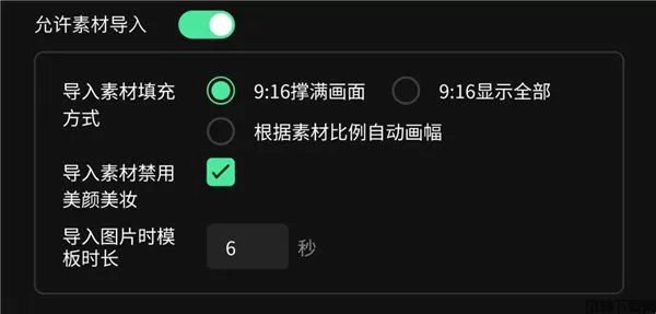 ○ 导入时禁用美颜美妆 :指模板自带的美颜美妆不对导入的图片起作用