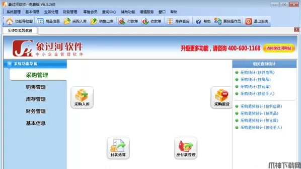象过河进销存软件经典版是一款象过河系列软件中的仓库管理软件。软件库存管理。采购入库、往来对账、领用出库、报表查询、库存报警等六大功能模块,软件提供实时监控,杜绝货物漏确情况发生,库存上下限报警,防止商品积压或缺货,多种报表一键生成,往来对账清晰明了。精确的货位管理,精细化仓库管理,提供仓库管理工作效率,最明显的优势就是能够做到智能补货,进价跟踪管理,做到零成本入库、负库存出库、成本精准核算。软件功能齐全,设计简单,操作方便,适合多种仓库管理模式像单一门店管理、配送中心+门店、特殊需求定制、生产加工仓库、异地多仓库、车销模式管理等多种管理模式,欢迎有需要的朋友下载体验!