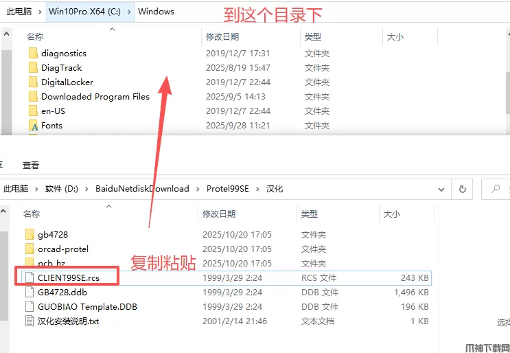 7、回到安装包进行汉化,打开“汉化”文件夹,将文件夹内的“CLIENT99SE.rcs”文件复制粘贴到Windows根目录下(默认为C:\Windows),再次打开软件即为汉化版,如图所示。