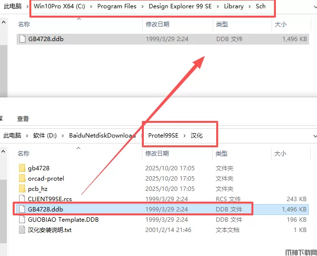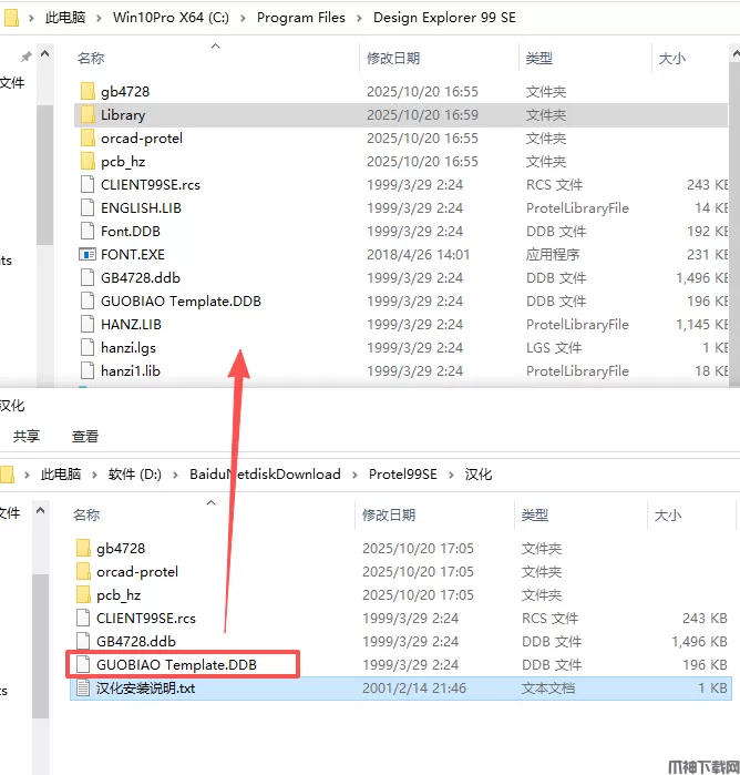 10、将“汉化”文件夹内的“GUOBIAO Template.DDB”文件复制粘贴到Design Explorer 99 SE根目录下(默认为:C:\Program Files\Design Explorer 99 SE),将其只读属性去掉。