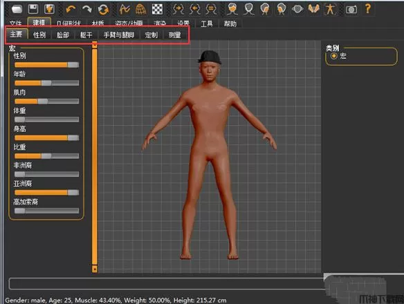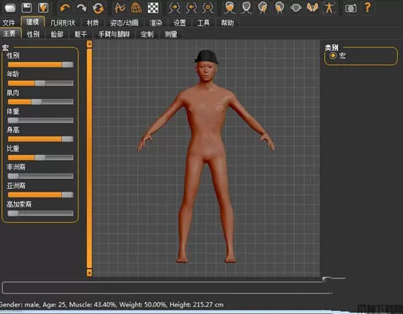 简单和直观的参数,包括年龄、性别、身高、体重身体比例、脸型眼睛、鼻子、嘴、下巴、耳朵、脖、手、脚等,你能想到的这里都有模型的存在。