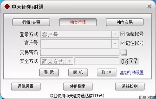 4、安装完成后点击启动文件并使用账号登录或者点击独立行情进入软件;