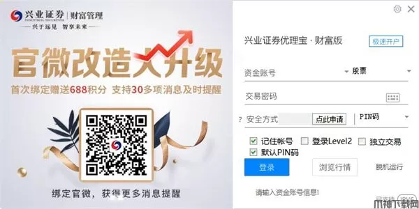 兴业证券优理宝财富版终端是兴业证券最新推出的一款金融理财PC终端软件,涵盖行情、资讯、交易、理财、业务办理等所有业务,并新增全景图、侧边栏、图文F10、大数据中心、精华资讯、单点登录网厅等亮点服务,支持股东人数、龙虎榜单、增持减持、新股日历、大宗交易、债券新规等特色查询。