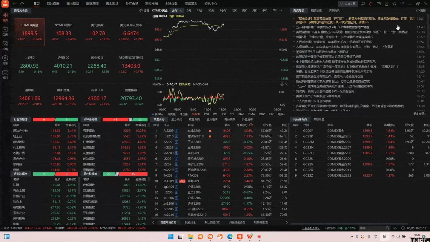 PC端行情图现已支持同时查看5个副图,您可在期货详情页、实盘交易界面、模拟交易界面的副图右上角单击“加号”按钮增加副图数量。