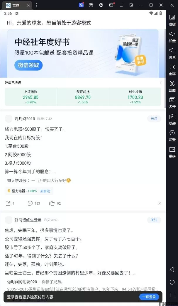 雪球股票电脑版是一款借助安卓模拟器而运行的集投资交流交易于一体的股票软件,该软件内置了全新的实时资讯信息和汇总了全网最新的、最热的市场行情动态,在这里用户们一站式阅读,一手了解整个金融市场行情走向。